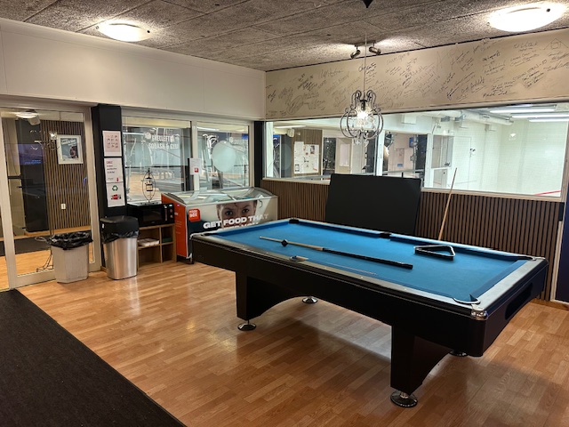 Lokalen ligger centralt i Skellefteå på Magasinsgränd 4. Det finns möjlighet för upp till 30 personer att äta i den stora Cafedelen. Det finns även bastu, biljard, bordtennis och möjlighet att spela squash.