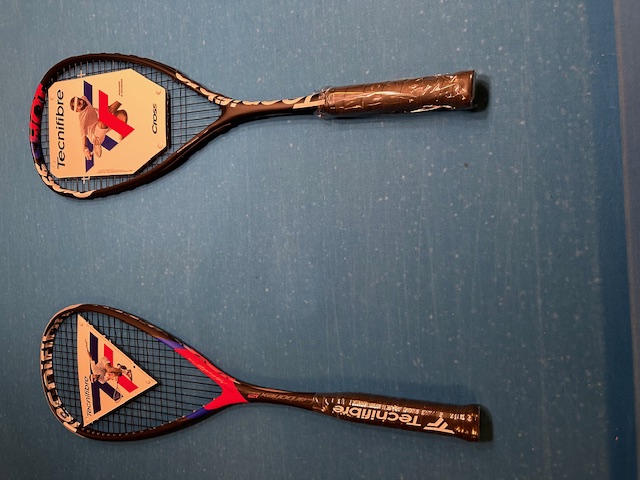 Det ena racketen är ett Technofibre carboflex x speed det kostar drygt 2000 kr i ordinarie pris det säljer vi ut för 875 kr .Det andra racketen heter Technifibre Crossshot det säljer vi för 675 kr.